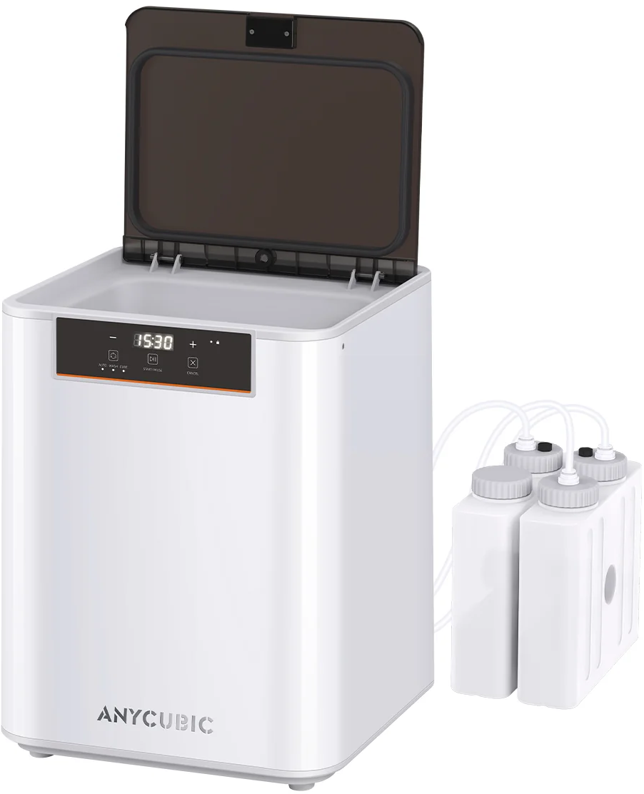 So zariadením Anycubic Wash & Cure 3 Max získate doteraz najväčšie a najvýkonnejšie komplexné riešenie pre živicové 3D výtlačky. Vďaka čistiacej kapacite 305 x 165 x 300 mm ponúka o 98,55 % väčší objem ako Wash & Cure 3 Plus, a preto je ideálny na veľkoformátové modely alebo viacero výtlačkov naraz.