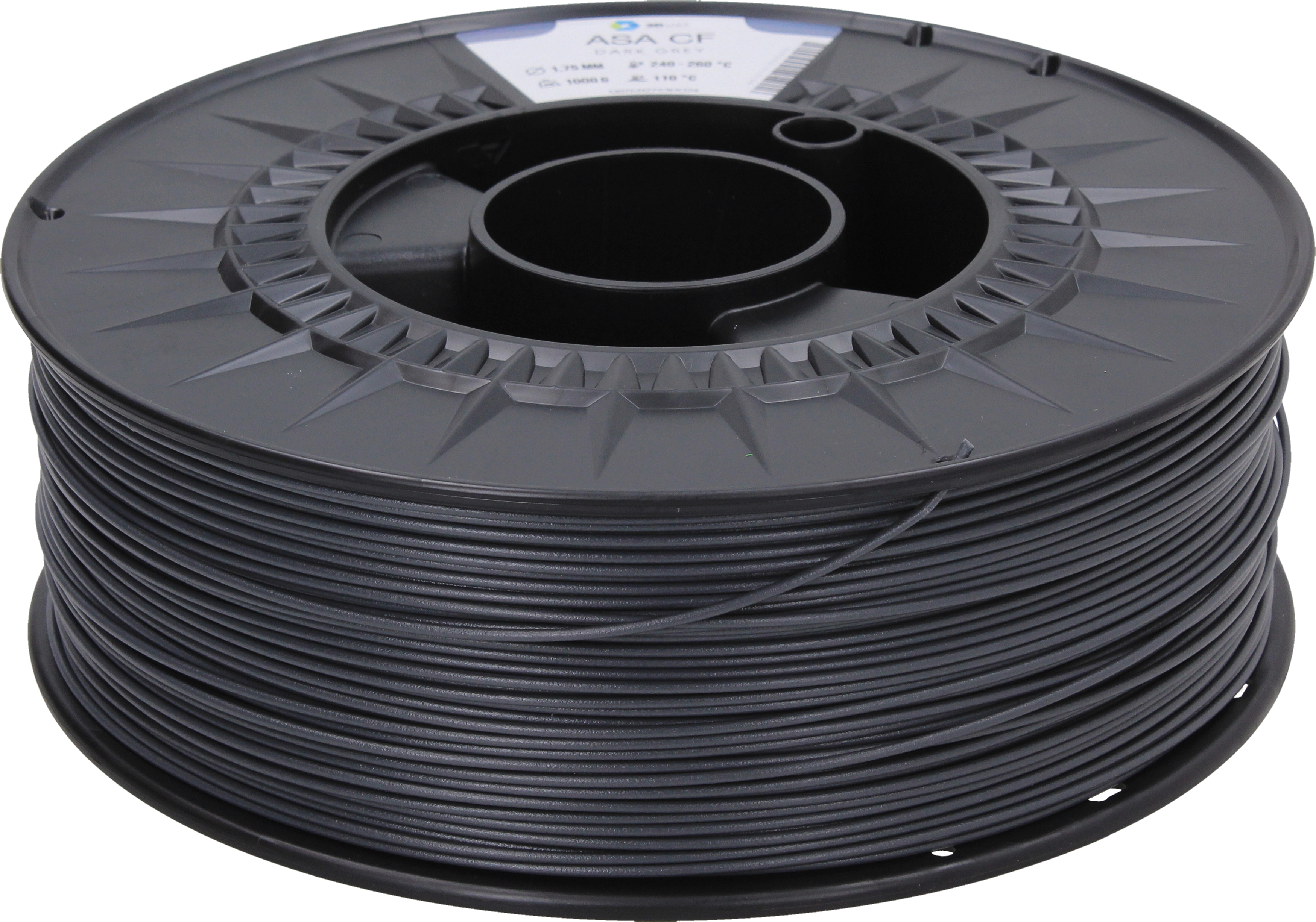 3DJake ASA CF je ASA filament vystužený uhlíkovými vláknami, ktorý bol špeciálne vyvinutý pre priemyselné aplikácie. Vďaka svojej odolnosti voči UV žiareniu a poveternostným vplyvom je ideálny na vonkajšie použitie, pričom uhlíkové vlákna zabezpečujú výrazne vyššiu tuhosť a pevnosť.