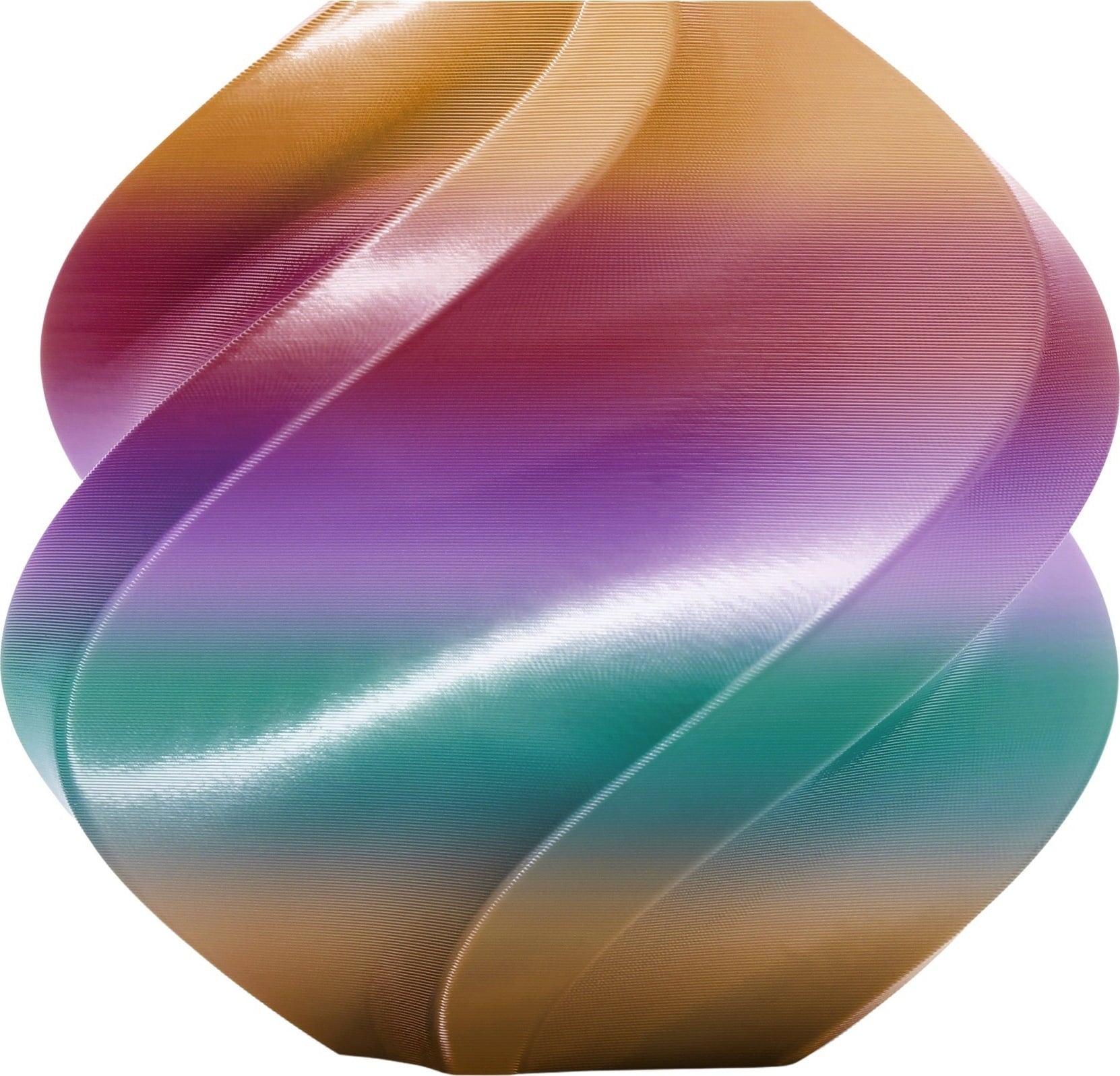 Hodvábny vzhľad a dlhotrvajúci vysoký lesk filamentu Multi Color sú ideálne na estetickú tlač dekoratívnych predmetov, umeleckých projektov alebo funkčných modelov.
