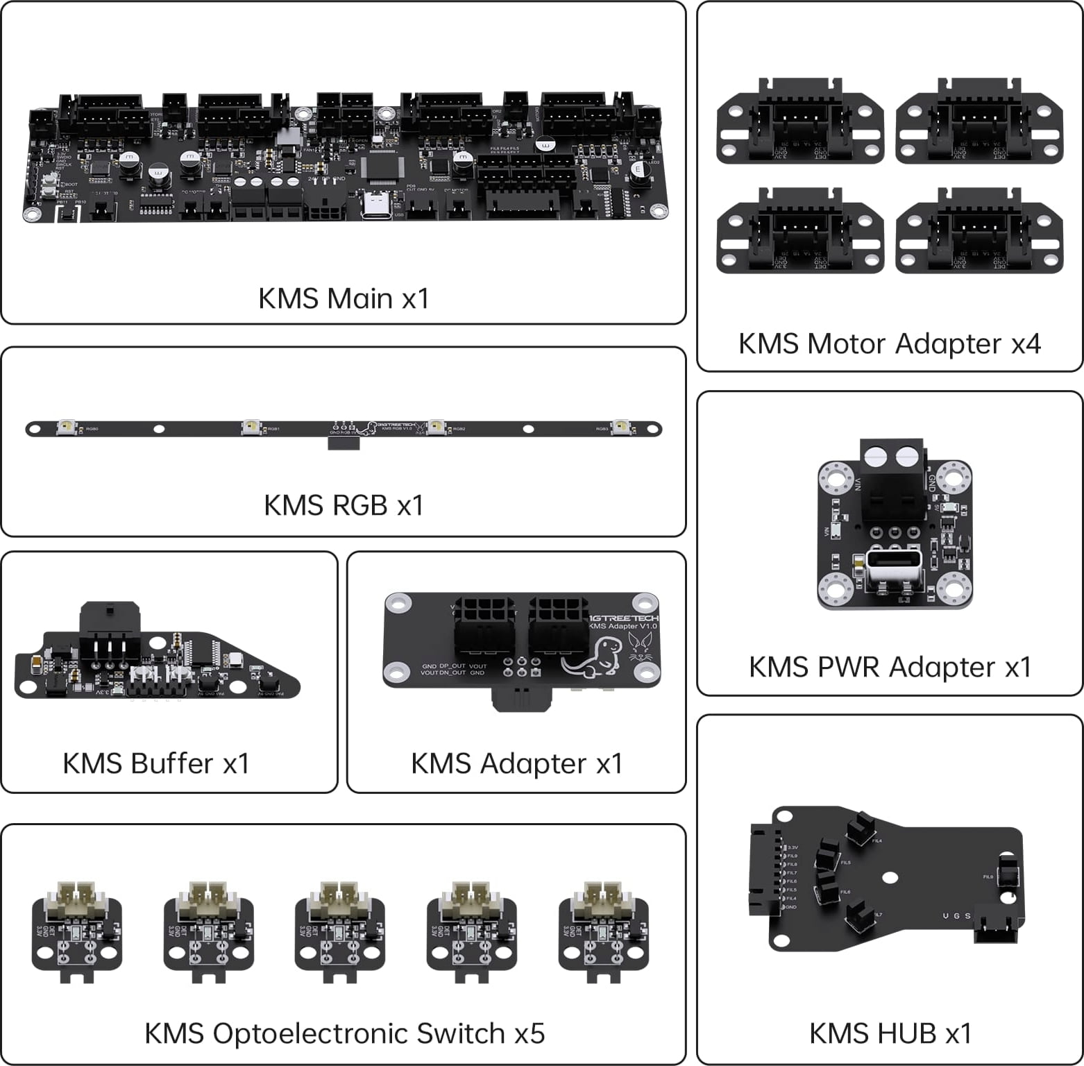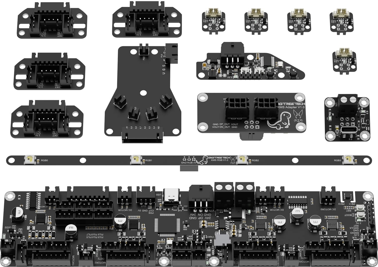 BTT KMS PCB Kit je výkonná modulárna riadiaca sada pre viacfarebné tlačové systémy. Sada bola vyvinutá v spolupráci s open source projektmi KMS a Happy Hare a umožňuje bezproblémovú plug-and-play integráciu do existujúcich viacmateriálových zostáv - vrátane systémov Happy Hare V3 a Type-B.