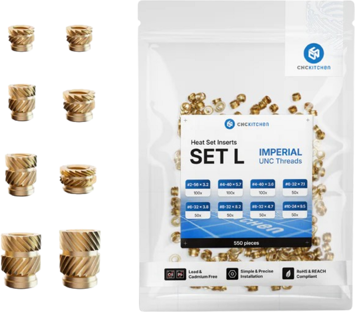CNC Kitchen Sada závitových vložiek L UNC, 1 sada (550 ks)