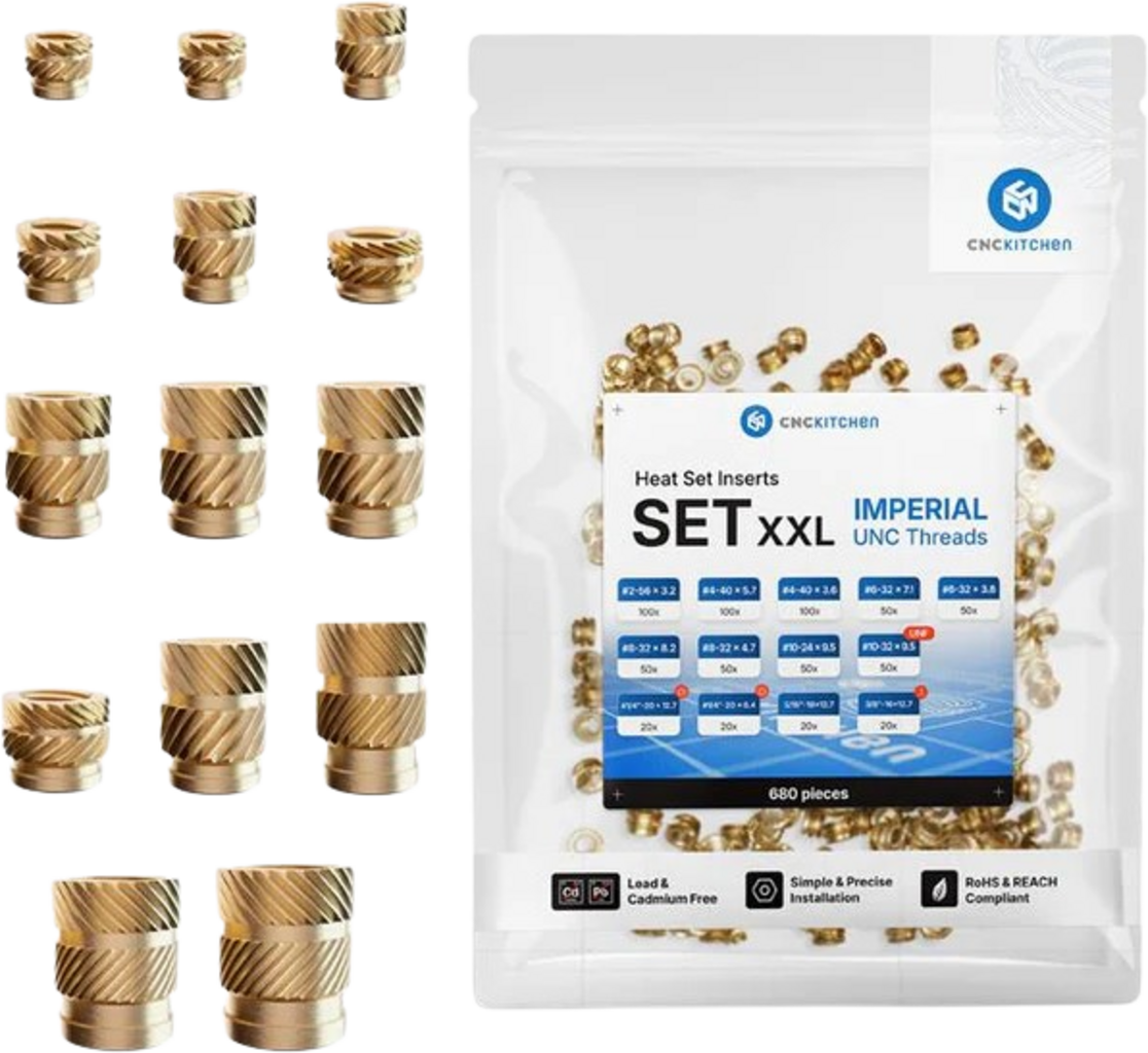 CNC Kitchen Sada závitových vložiek XXL UNC, 1 sada (680 ks)