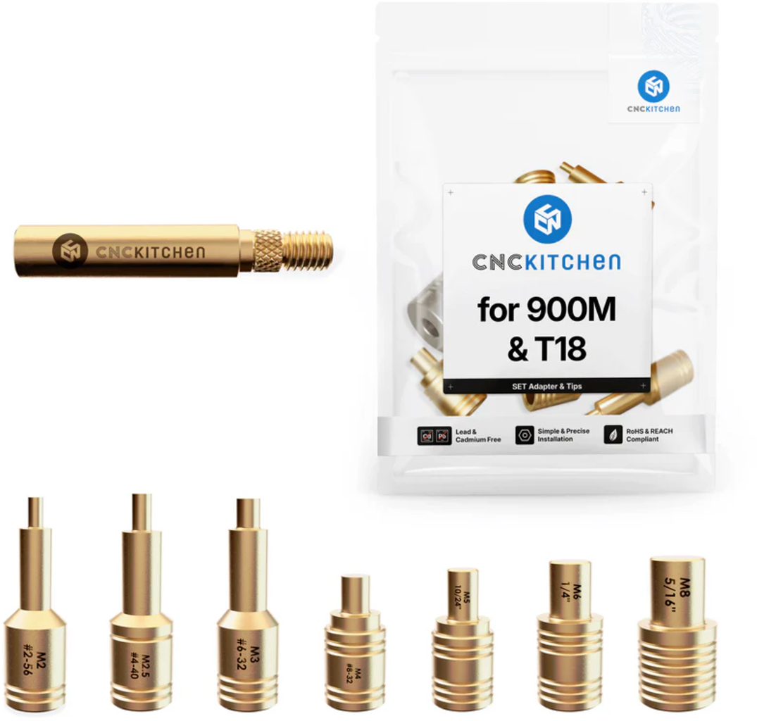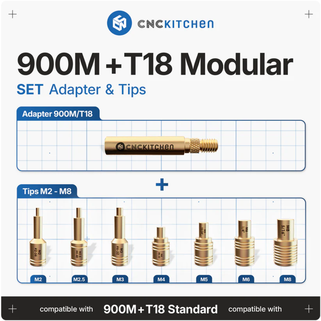 Sú kompatibilné so spájkovačkami T18 a M900 (napríklad Hakko, Lenovo, Sremtch) a dokonale sa hodia k závitovým vložkám CNC Kitchen. Spájkovacie hroty majú laserové značenie a zárezy na jednoduchú identifikáciu veľkosti. Sú v súlade so smernicami REACH a RoHS.