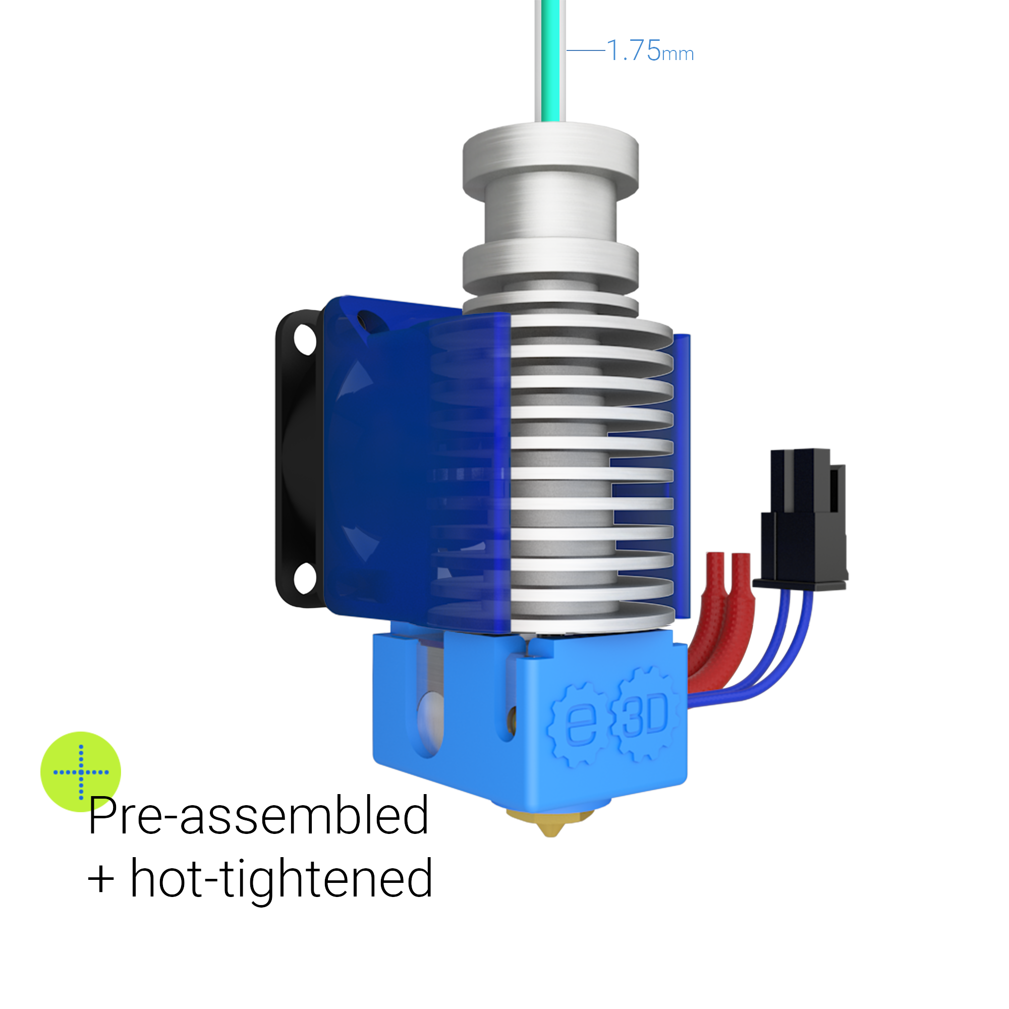 V6 je plne integrovanou súčasťou ekosystému E3D. Náš sortiment trysiek a blokov vám poskytuje viac možností na rozhodovanie o tom, ako chcete tlačiť. Vyberte si z rôznych priemerov a materiálov filamentov, aby ste posunuli svoju tlač na vyššiu úroveň a inovovali na tlač pri veľmi vysokej teplote!