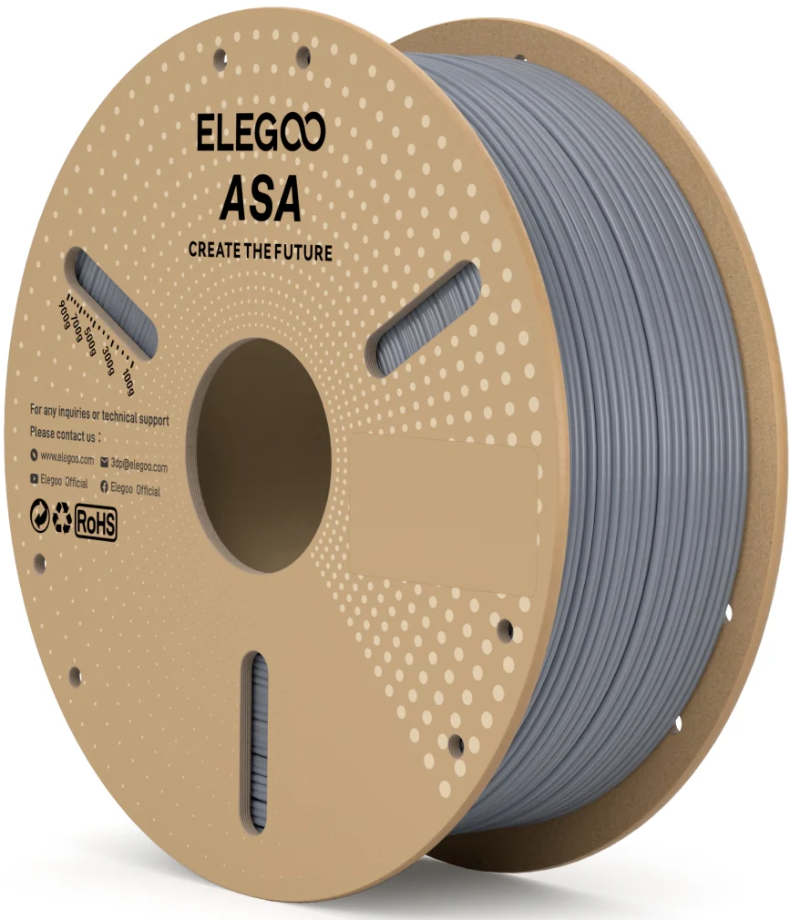 ASA od spoločnosti Elegoo je odolný materiál, ktorý je vďaka svojej zlepšenej tepelnej stabilite ideálny na tlač funkčných dielov. Materiál odoláva vysokým teplotám a zachováva si svoje mechanické vlastnosti aj pri veľmi vysokých prevádzkových teplotách. Vďaka vynikajúcej odolnosti voči UV žiareniu a poveternostným vplyvom sa materiál môže používať aj vo vonkajšom prostredí.
