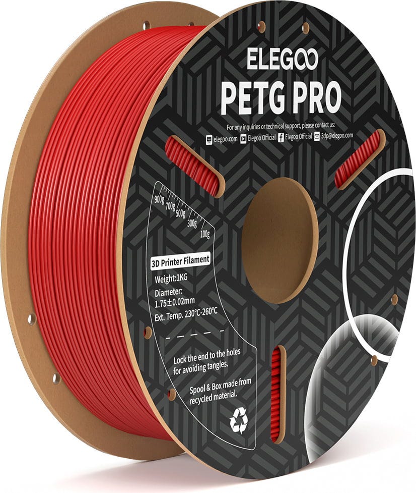 PETG PRO od spoločnosti Elegoo kombinuje jednoduchú tlač PLA s pevnosťou a odolnosťou ABS. Materiál ponúka vynikajúcu rozmerovú stabilitu a poskytuje dobrú húževnatosť a výnimočnú odolnosť voči nárazom.