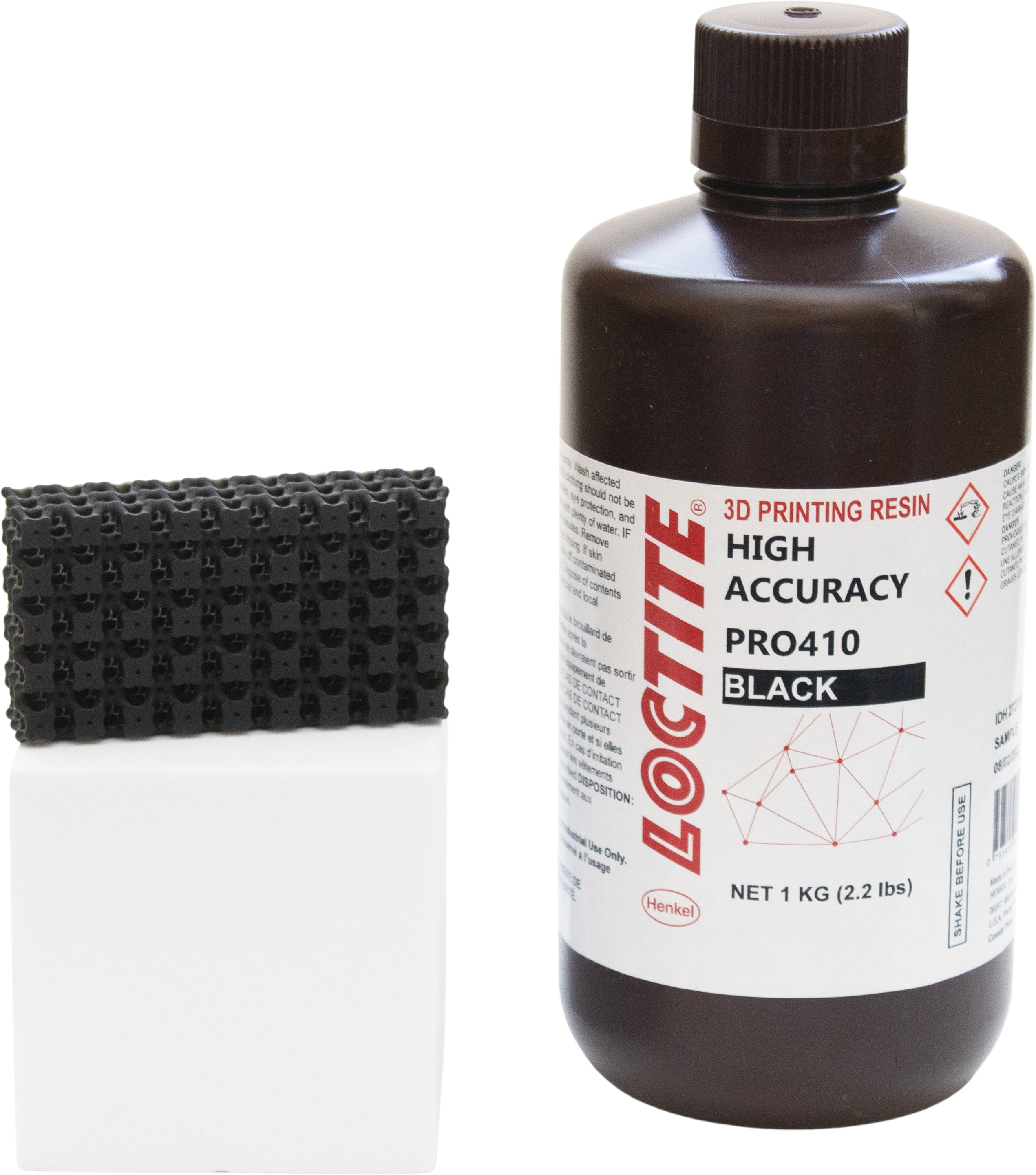 LOCTITE 3D PRO410 je tuhý fotopolymér, ktorý možno tlačiť rýchlo, s vysokou presnosťou a vynikajúcou povrchovou úpravou. Živica ponúka až trikrát vyššiu rýchlosť tlače*, vďaka čomu je vhodná na tlač presných prototypov, ktoré sú vystavené teplotám tlače až do 60 °C.
