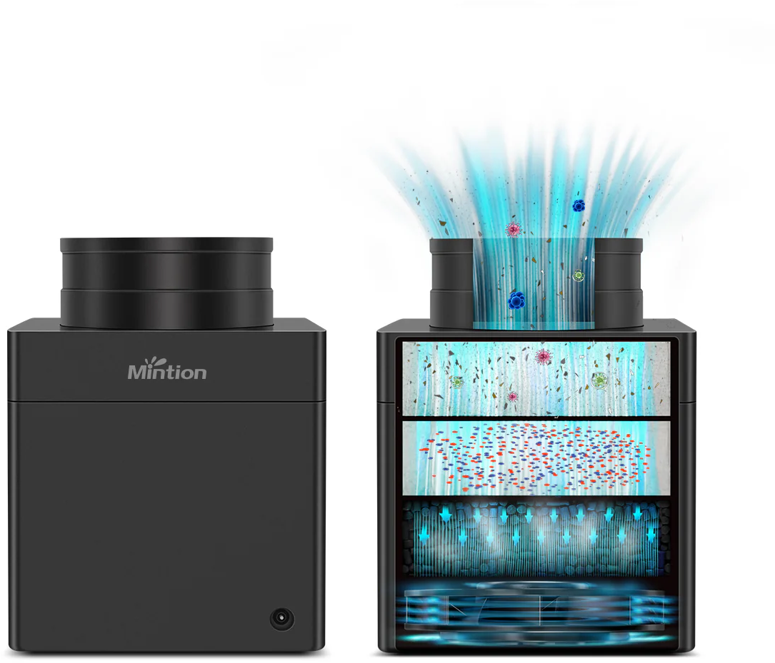 Filtračný systém Mintion V1 bol špeciálne vyvinutý na účinné znižovanie častíc, výparov a zápachov vznikajúcich pri 3D tlači. Vďaka sofistikovanému 3-stupňovému filtračnému systému a výkonnému ventilátoru zabezpečuje výrazne lepšiu kvalitu vzduchu, a preto je ideálny pre domáce zostavy, kancelárie, dielne a profesionálne aplikácie.