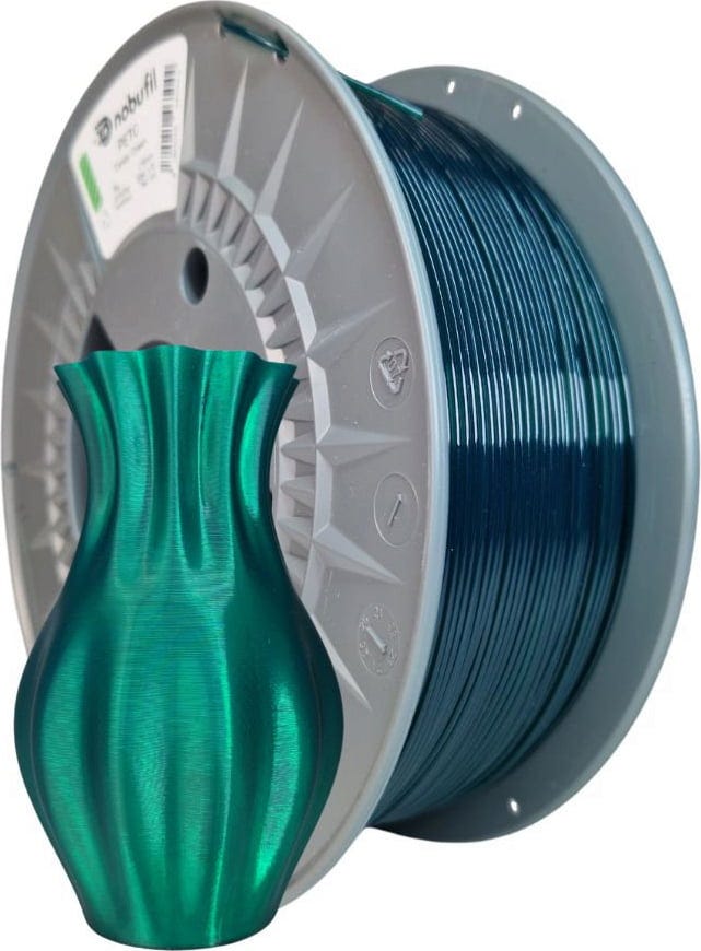 PETG značky Nobufil je recyklovaný filament vyrobený z plastového odpadu, ktorý sa vyznačuje vynikajúcou priľnavosťou vrstiev, odolnosťou a robustnosťou. Materiál má vysokú odolnosť proti nárazu a podobnú teplotnú odolnosť a pevnosť ako ABS.