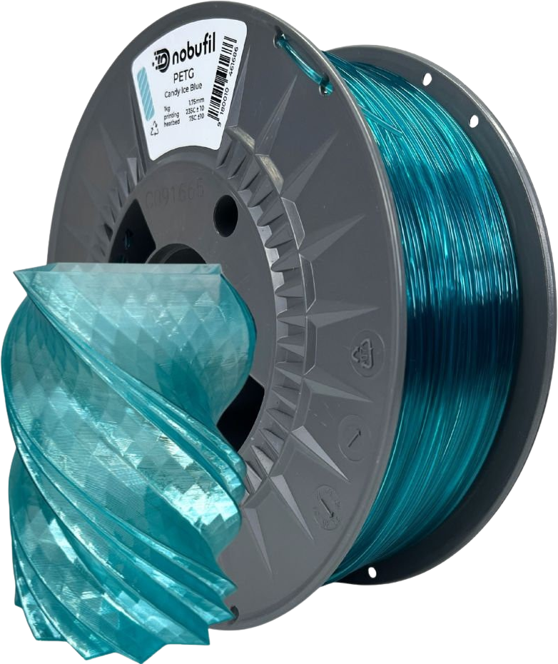 PETG od spoločnosti Nobufil je recyklovaný filament vyrobený z plastového odpadu, ktoré sa vyznačuje vynikajúcou priľnavosťou vrstiev, odolnosťou a robustnosťou. Materiál má vysokú odolnosť voči nárazom a podobnú teplotnú odolnosť a pevnosť ako ABS.