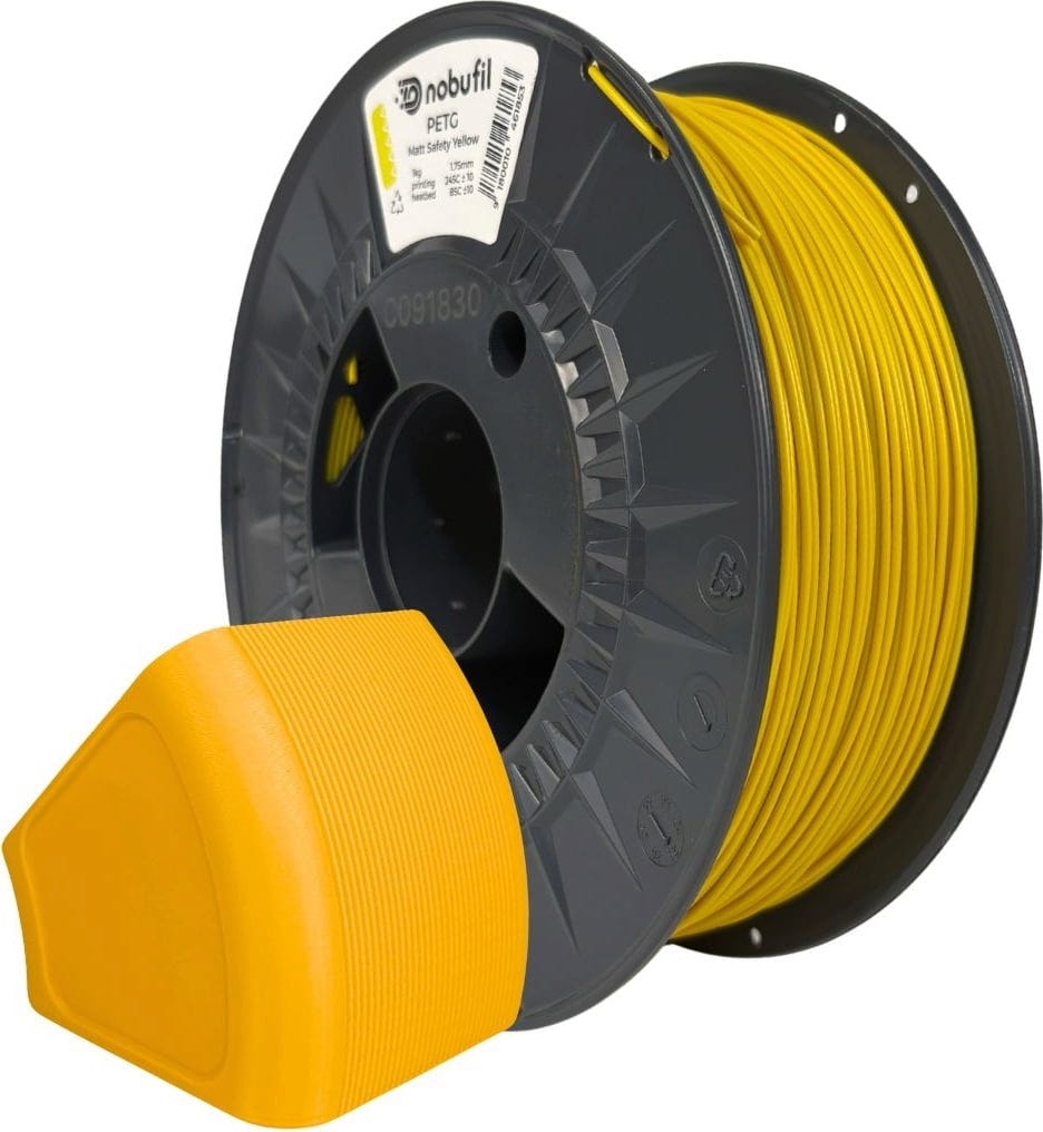 PETG Matt od spoločnosti Nobufil je recyklovaný filament vyrobený z plastového odpadu, ktoré sa vyznačuje vynikajúcou priľnavosťou vrstiev, odolnosťou a robustnosťou. Materiál má vysokú odolnosť voči nárazu a podobnú teplotnú odolnosť a pevnosť ako ABS.