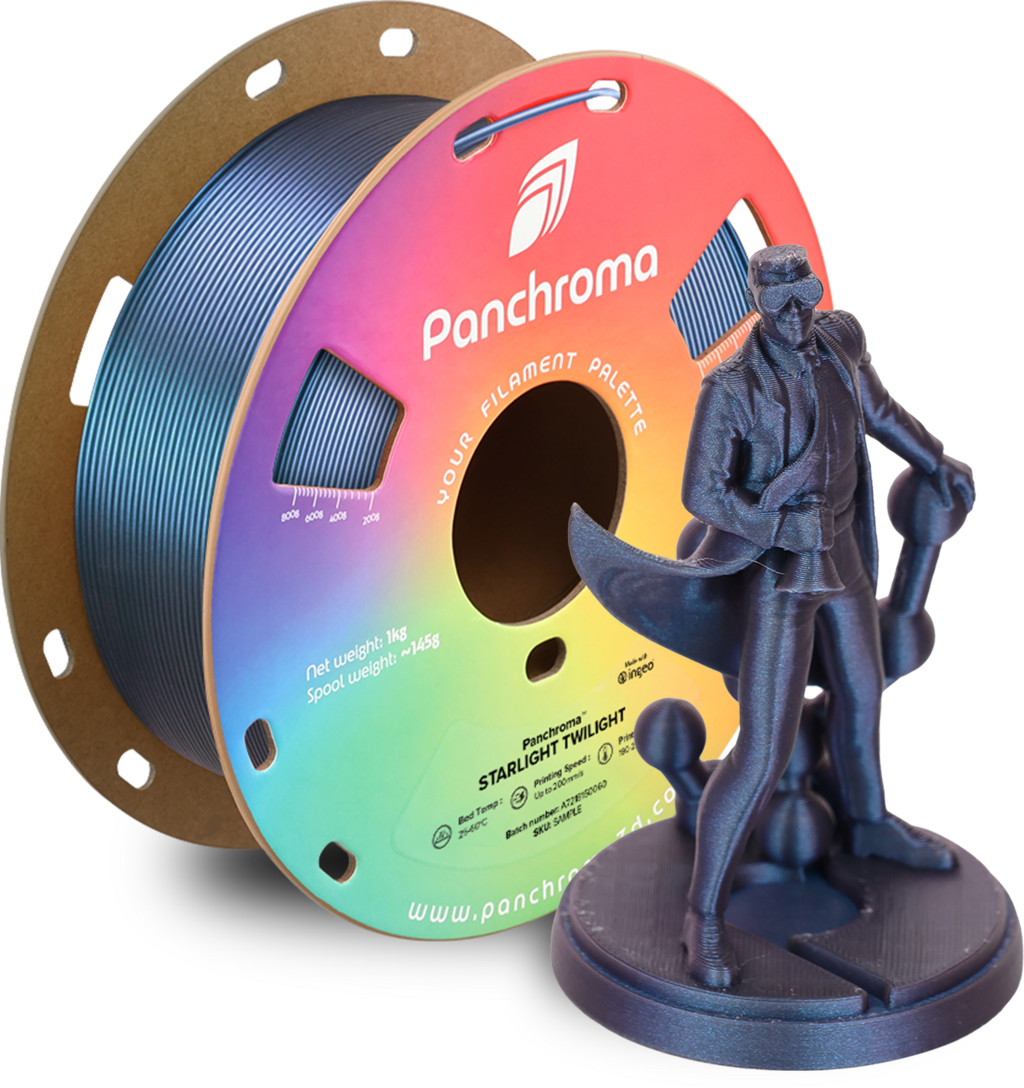 Nechajte svoje 3D výtlačky zažiariť ako nikdy predtým! S materiálom Panchroma™ Starlight PLA od spoločnosti Polymaker môžete na svojich výtlačkoch vyčarovať jedinečný trblietavý efekt, ktorý mení farbu v závislosti od dopadu svetla. Vďaka tomuto fascinujúcemu efektu je každý model pútavý a dynamický - ako trblietajúce sa hviezdy tancujúce na nočnej oblohe.