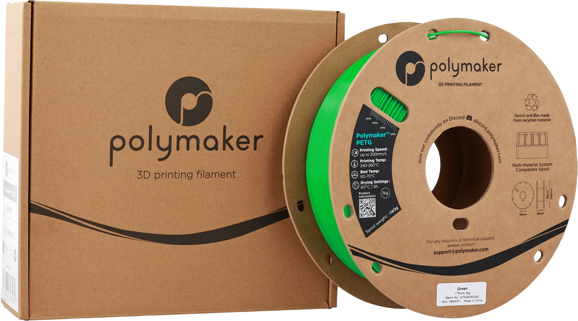 Tip: PETG značky Polymaker je možné ľahko tlačiť bez krytu a je plne kompatibilný so systémom AMS a ďalšími systémami s viacerými materiálmi na čistú zmenu farby a spoľahlivú manipuláciu s materiálom.