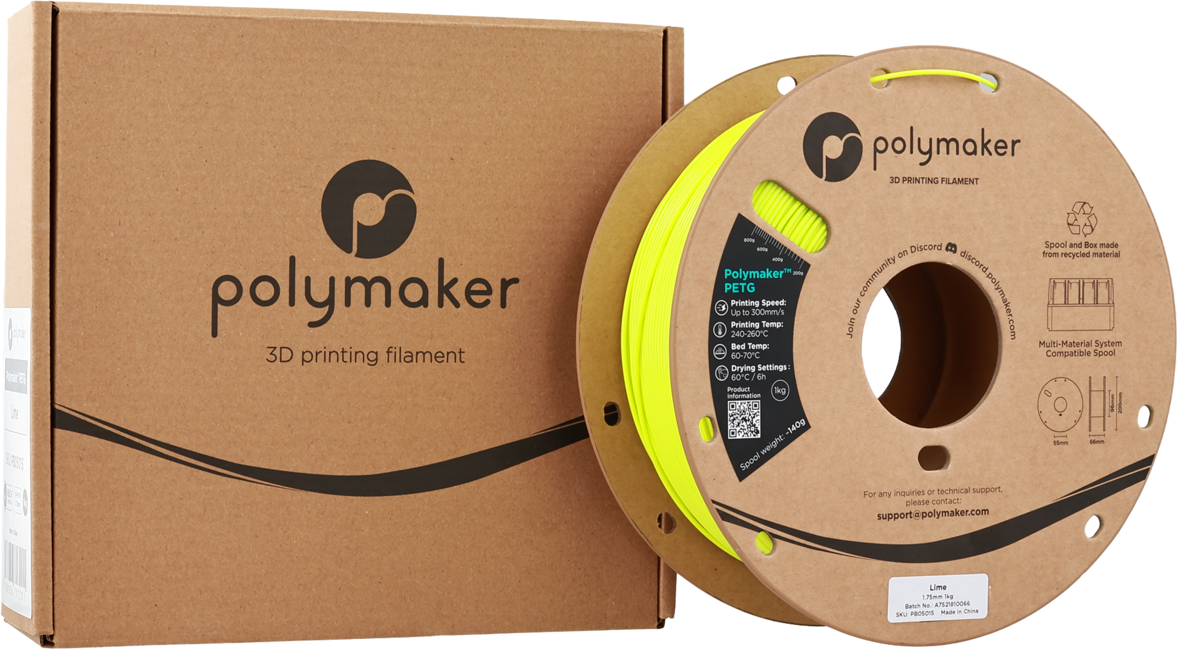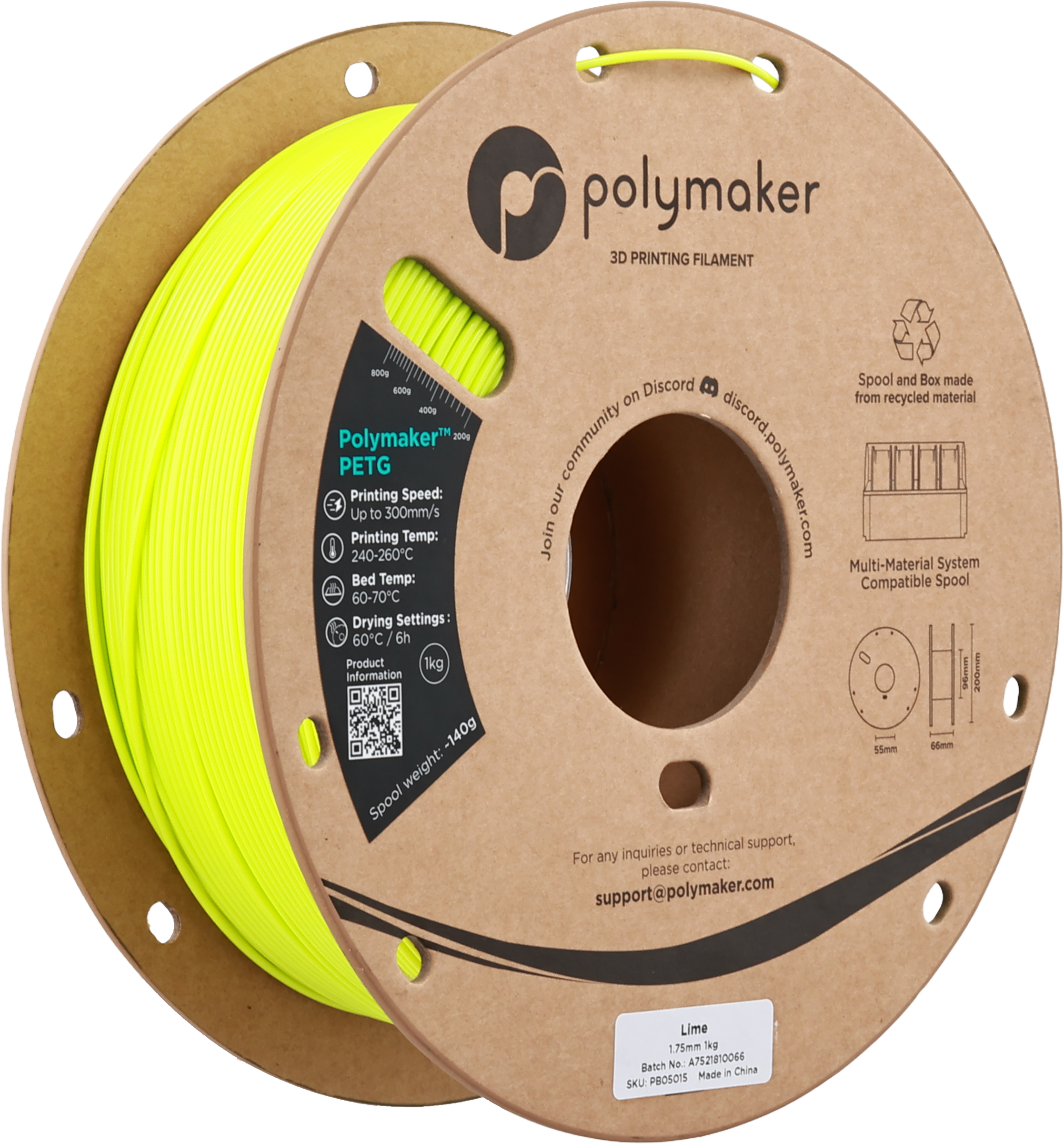 Tip: PETG značky Polymaker je možné ľahko tlačiť bez krytu a je plne kompatibilný so systémom AMS a ďalšími systémami s viacerými materiálmi na čistú zmenu farby a spoľahlivú manipuláciu s materiálom.