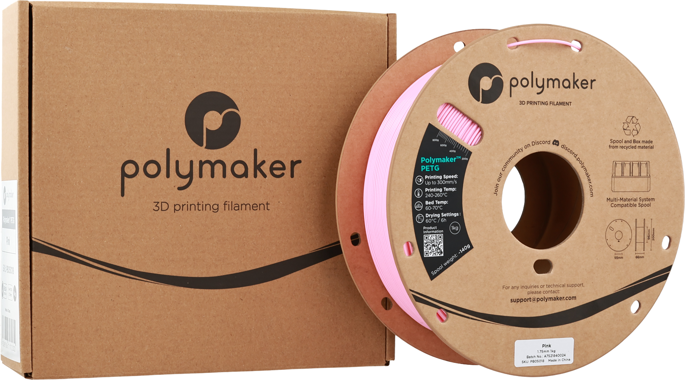 Tip: PETG značky Polymaker je možné ľahko tlačiť bez krytu a je plne kompatibilný so systémom AMS a ďalšími systémami s viacerými materiálmi na čistú zmenu farby a spoľahlivú manipuláciu s materiálom.