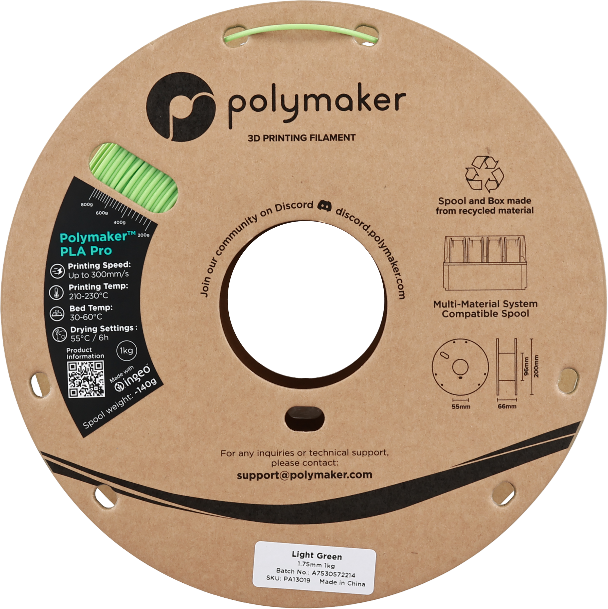Polymaker PLA Pro Light Green, 1,75 mm / 1000 g