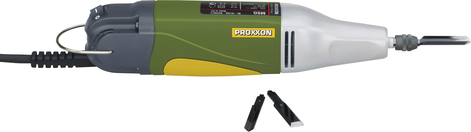 Elektrické rezbárske dláto MSG PROXXON je výkonný presný nástroj na jemné rezbárske a obrábacie práce. Je vhodný na opracovanie všetkých druhov dreva, na renováciu a opracovanie nábytku, na renováciu starožitností, na výrobu šablón z linolea a na jemné odstraňovanie starých náterov. Kontrolovaným a čistým spôsobom možno opracovávať aj omietku.