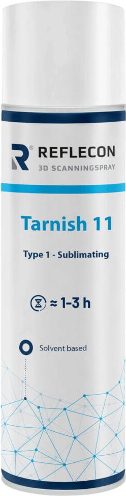 Tarnish 11 Scanningspray značky Reflecon je prchavý matovací prostriedok, ktorý bol špeciálne vyvinutý na použitie pri optickom 3D laserovom skenovaní. Vytvára homogénny, matný povrch, a preto výrazne zlepšuje detekciu lesklých alebo reflexných komponentov.
