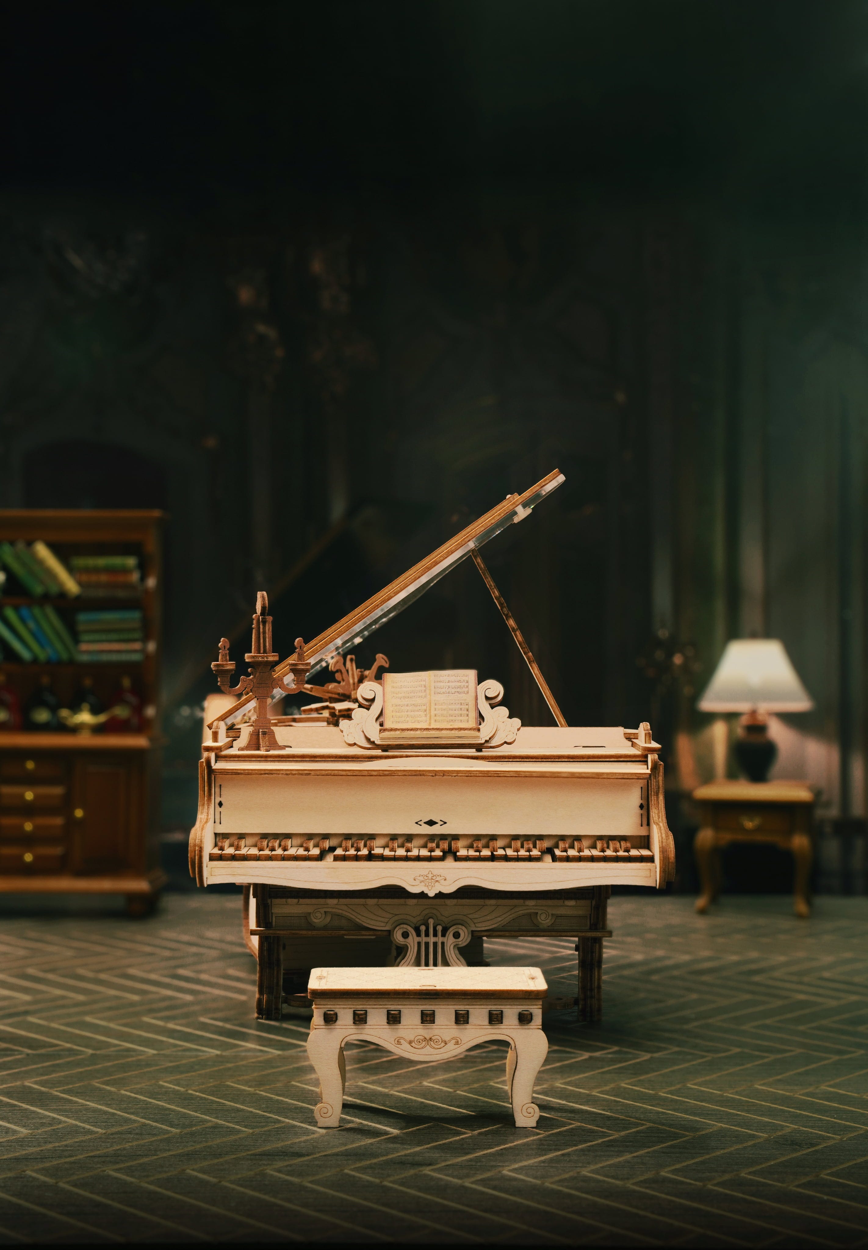 ROKR Magic Piano je neobyčajná drevená 3D skladačka, ktorá oživuje detailne prepracovaný klavír - umiestnený na kope starožitných kníh, sprevádzaný jemnou mechanikou, hudbou a malými magickými detailmi. Aj počas skladania máte pocit, akoby ste skladali scénu zo starej rozprávky.
