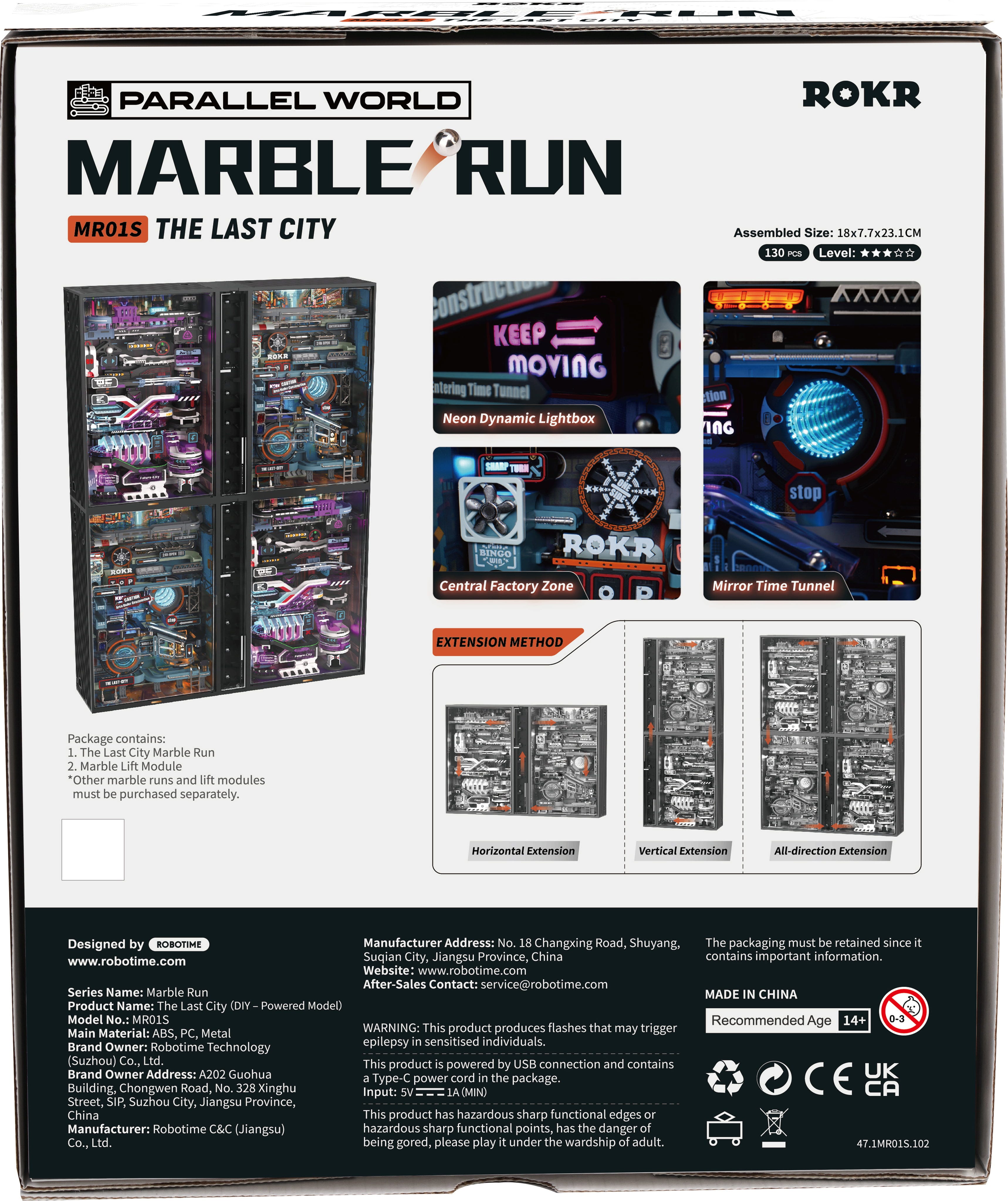 Mesto sa môže aj rozrastať: The Last City je rozšíriteľné a kompatibilné s ostatnými plastovými guličkovými dráhami ROKR z rovnakej série. Ďalšie oblasti je možné vertikálne a horizontálne prepojiť pomocou zdvihových modulov. Postupne tak vzniká väčší Cyberpunk vesmír.