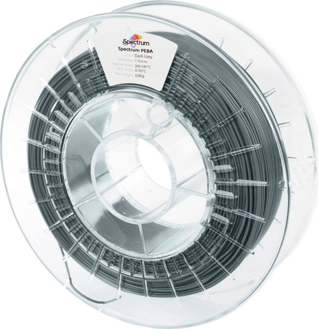Spectrum PEBA je technicky sofistikovaný, pružný prémiový filament na báze Polyether-Block-Amid- kopolyméru, ktorý bol vyvinutý pre aplikácie vyžadujúce vysokú elasticitu, dynamickú odolnosť a spoľahlivé mechanické vlastnosti. Jeho špecifická molekulárna štruktúra kombinuje flexibilitu elastomérnych materiálov s rozmerovou stabilitou technických plastov, čím ponúka vyššiu odolnosť, nižšie tlmenie a lepší rozptyl energie v porovnaní s TPU.