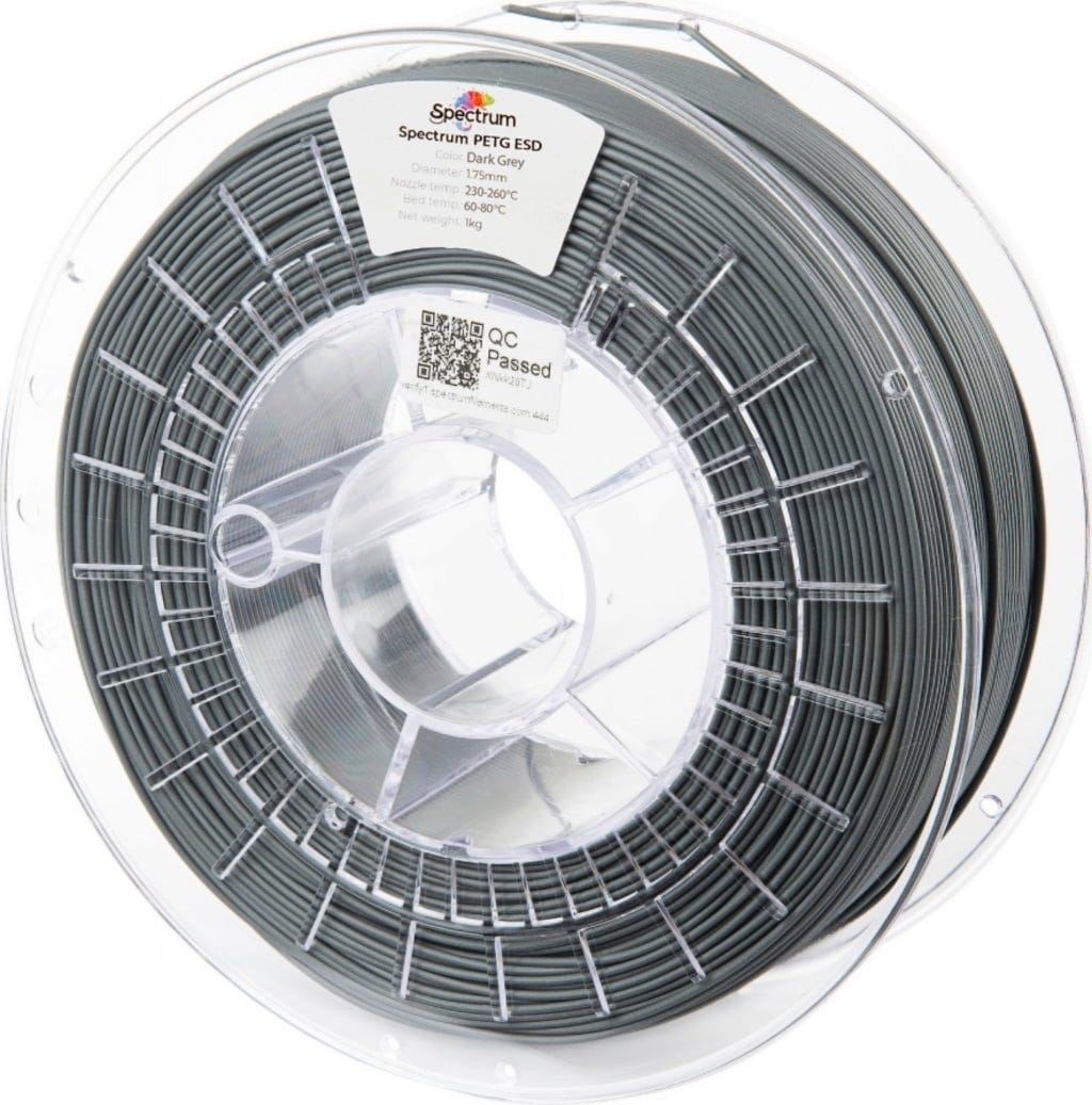 Spectrum PETG ESD je profesionálny antistatický filament, ktorý bol špeciálne vyvinutý pre prostredie, kde elektrostatický výboj predstavuje skutočné nebezpečenstvo. Vďaka špeciálne vyvinutému, trvalo účinnému zloženiu ESD kombinuje tento materiál robustnosť a jednoduchú tlačiteľnosť PETG so spoľahlivou ochranou elektroniky, meracích zariadení a zón EX/ATEX. Matný povrch zároveň zabezpečuje vysokokvalitnú technickú povrchovú úpravu, a preto je ideálny pre profesionálne aplikácie a presné funkčné komponenty.