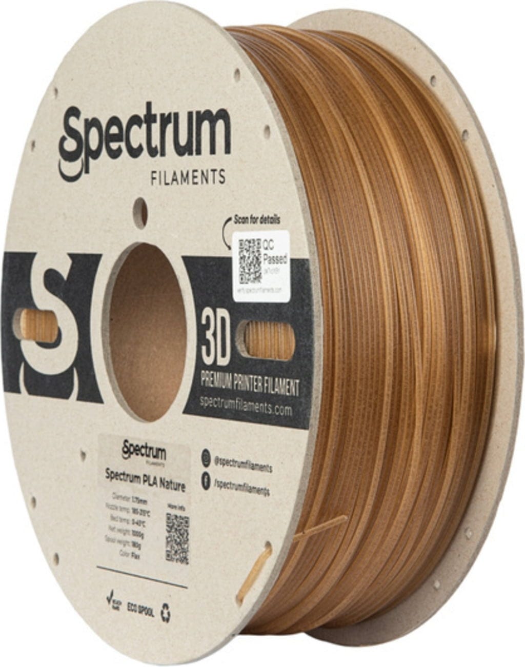 Spectrum PLA Nature je špeciálny rad filamentov PLA, ktorý bol vyvinutý s cieľom priniesť do 3D tlače prirodzené textúry a jedinečné povrchové štruktúry. Použitím vybraných organických plnív sa PLA Nature jasne odlišuje od klasického PLA a otvára nové možnosti dizajnu, pričom sa ľahko spracováva.