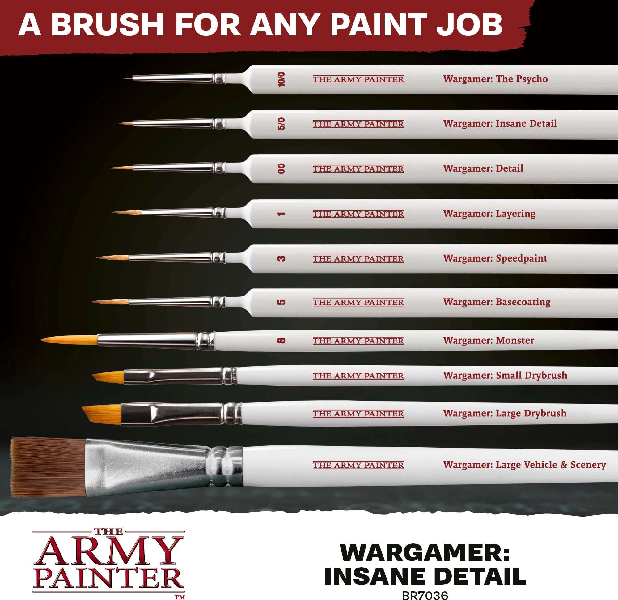 Wargamer Brushes od spoločnosti The Army Painter stanovujú nové štandardy v oblasti maľovania miniatúr. Vďaka inovatívnej technológii Bionic Bristle zo syntetických vlákien sú tieto štetce špeciálne navrhnuté pre moderné techniky maľovania, ako je Speedpaint a nanášanie jednej vrstvy.