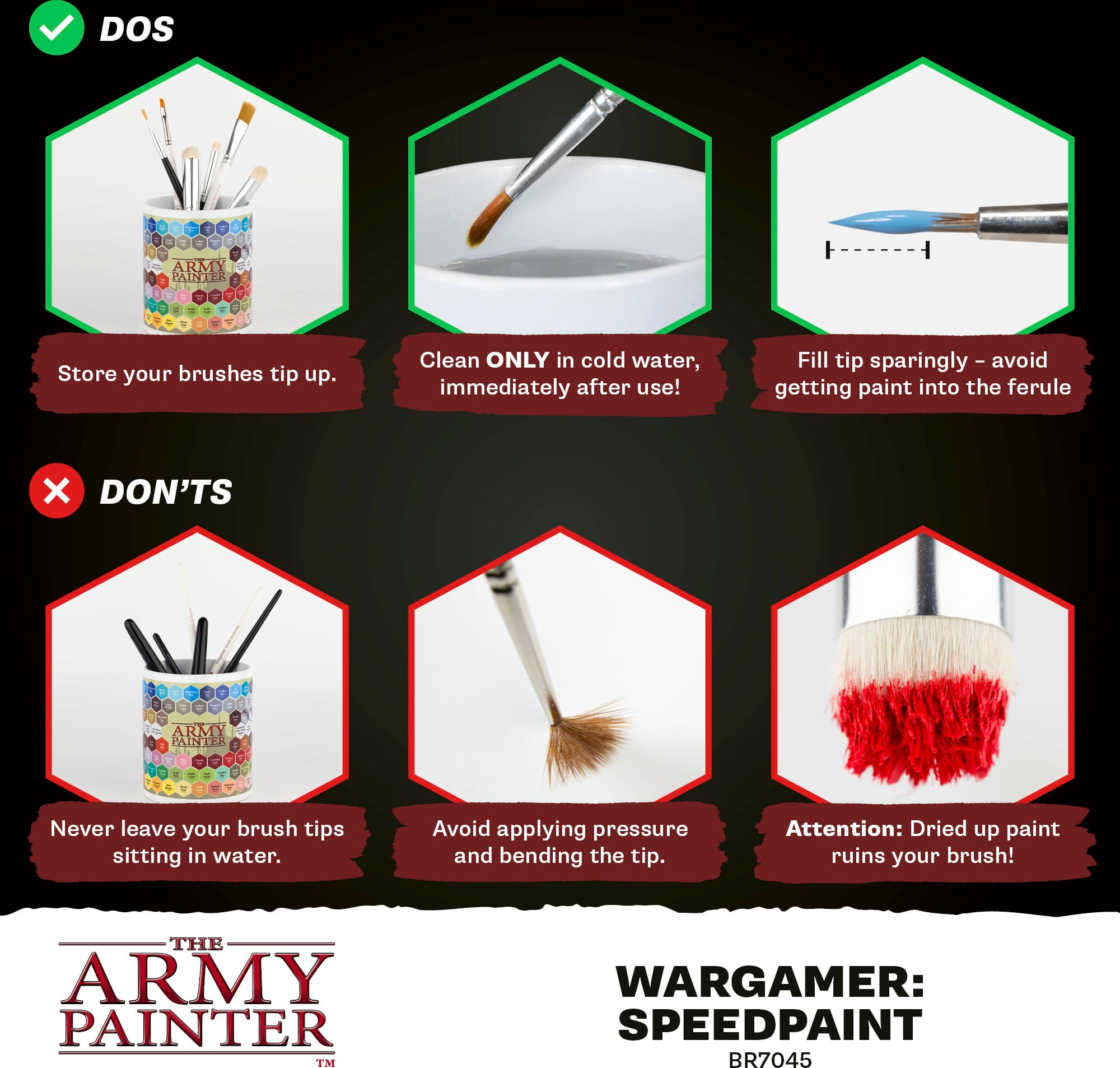 Wargamer Brushes od spoločnosti The Army Painter stanovujú nové štandardy v oblasti maľovania miniatúr. Vďaka inovatívnej technológii Bionic Bristle zo syntetických vlákien sú tieto štetce špeciálne navrhnuté pre moderné techniky maľovania, ako je Speedpaint a nanášanie jednej vrstvy.