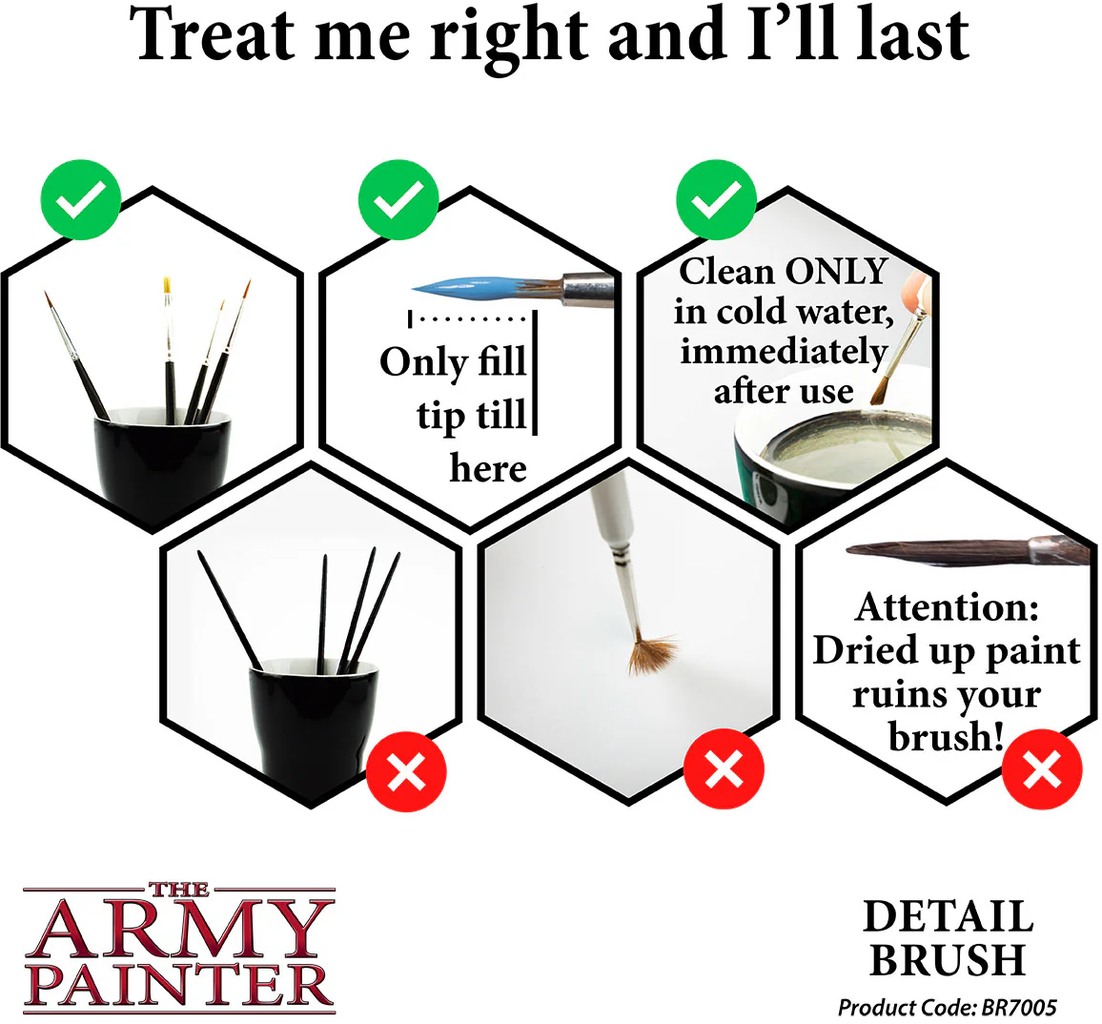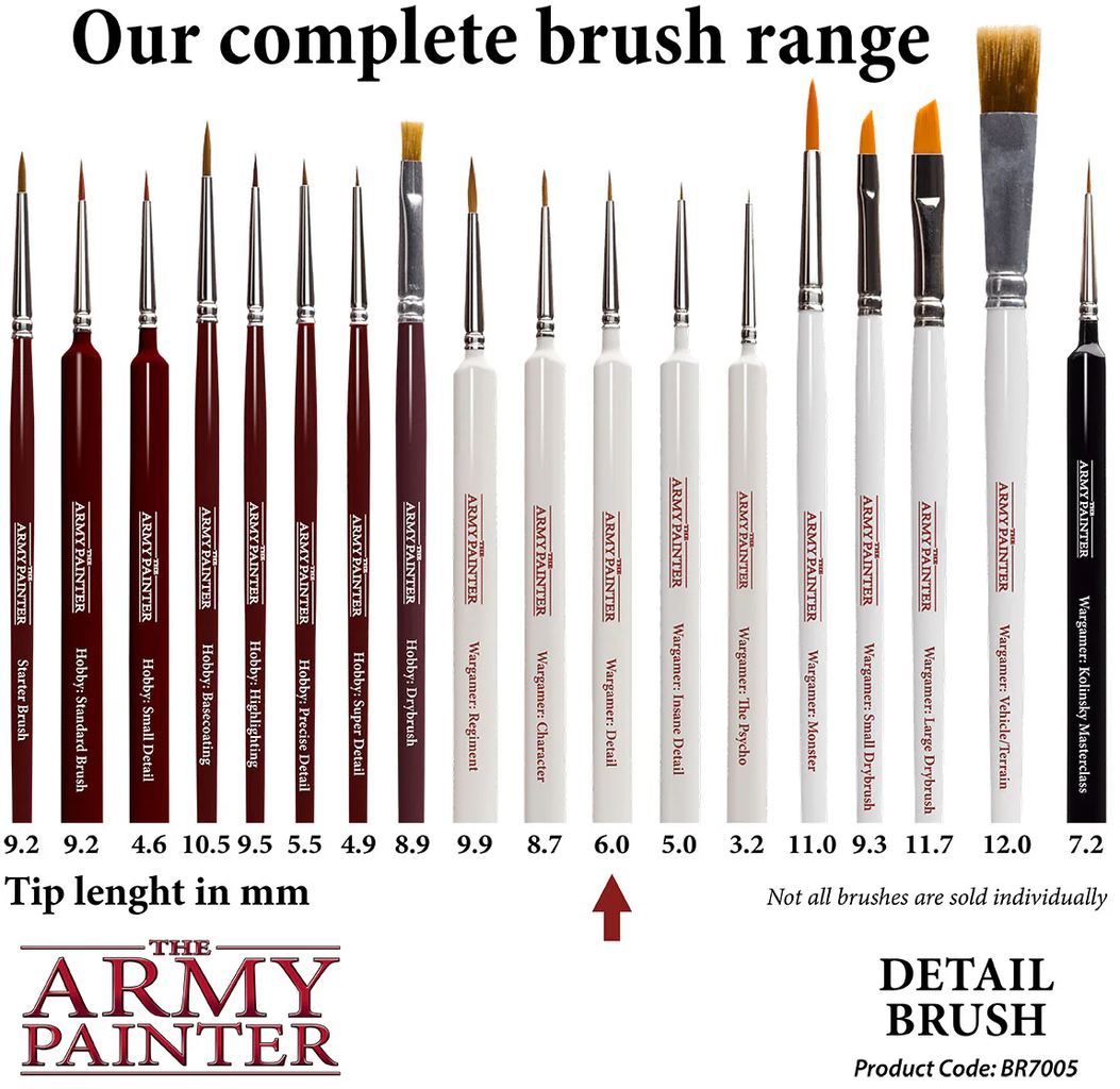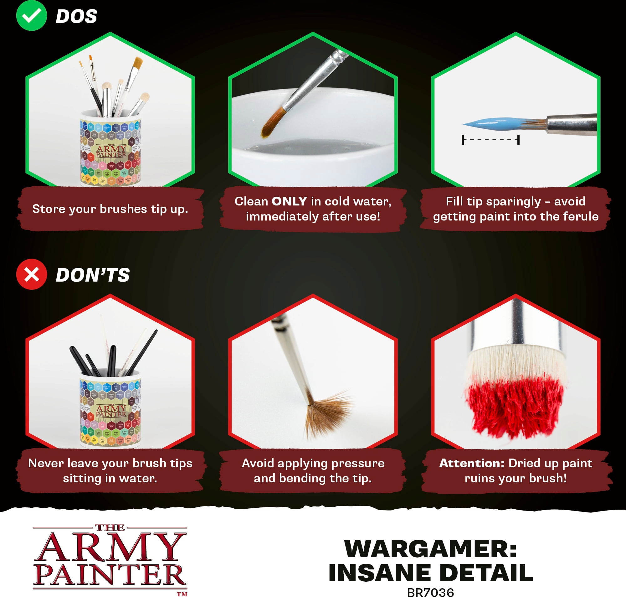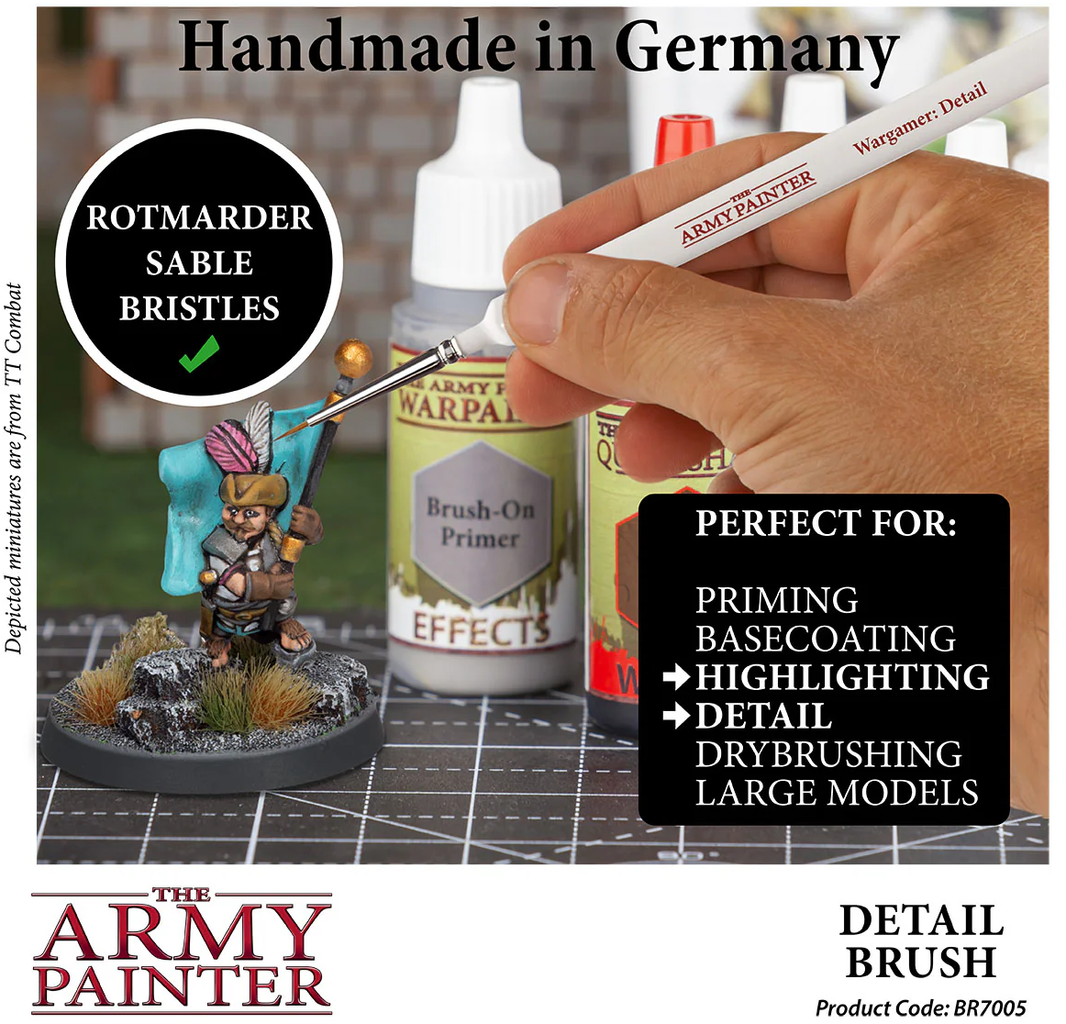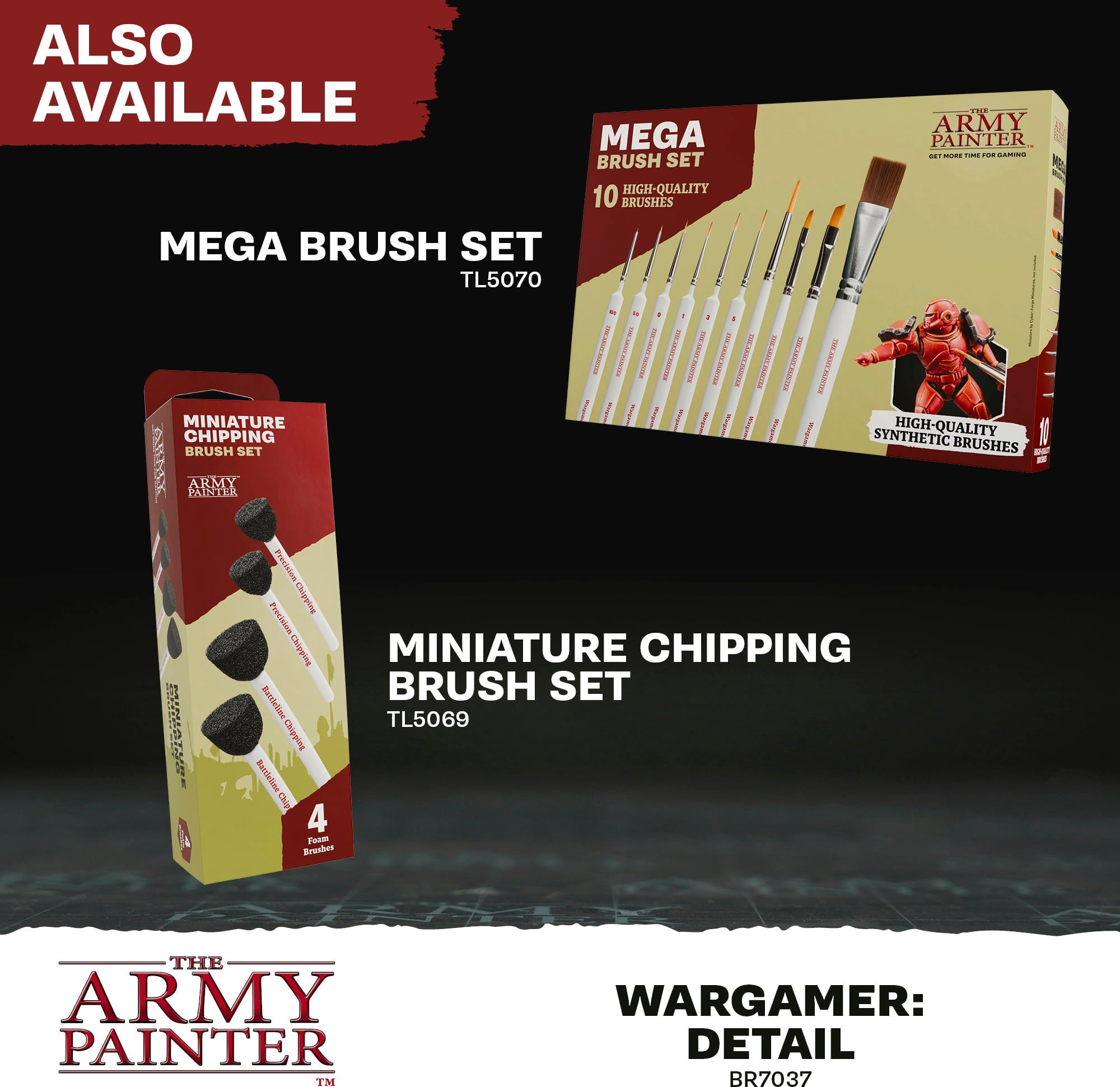 Štetce značky The Army Painter sú tajné zbrane, ktoré posunú vaše miniatúry na vyššiu úroveň. Tieto vysokokvalitné štetce boli špeciálne vyvinuté tak, aby spĺňali požiadavky nadšencov wargamingu. Poskytnú vám presnosť, kontrolu a odolnosť, ktoré potrebujete na oživenie svojich armád - či už ide o maľovanie jemných detailov alebo veľkých plôch.