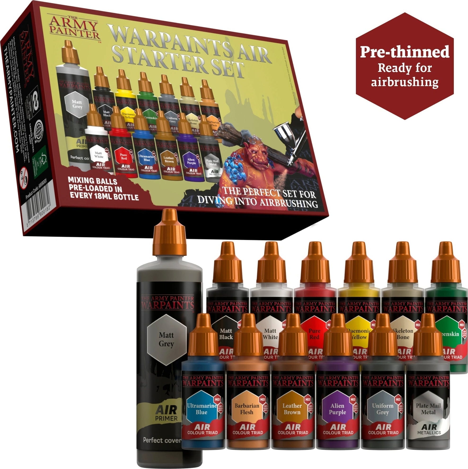 Začnite ihneď so štartovacou sadou Warpaints Air od spoločnosti The Army Painter! Starostlivo zostavená paleta farieb obsahuje univerzálne, číre odtiene, ktoré sú ideálne pre vaše prvé airbrush projekty a zároveň ponúkajú dostatok priestoru pre kreatívne návrhy.