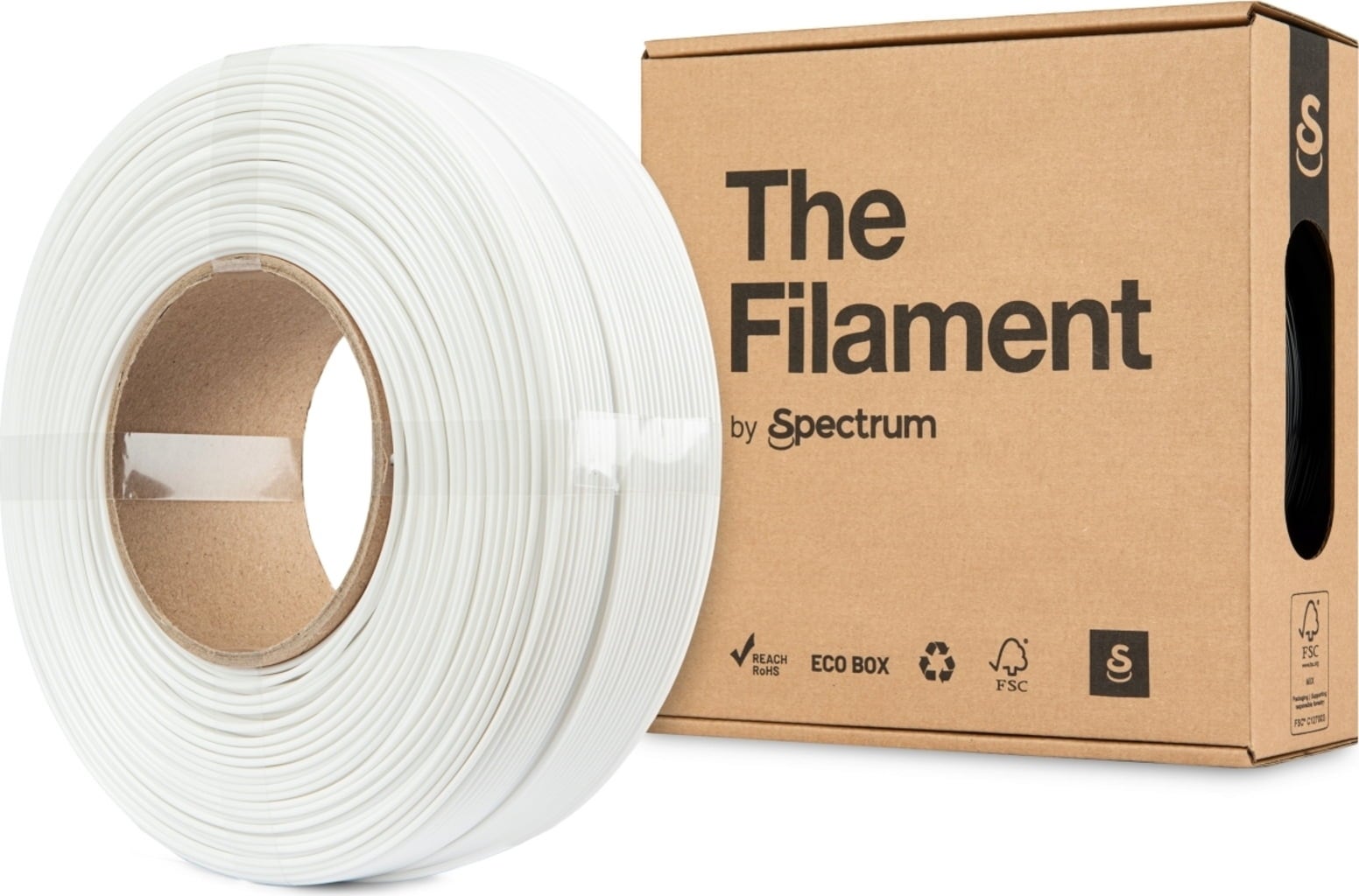 Tento ReFill je PETG filament bez cievky navinutý na kartónovom jadre. Je kompatibilný s opakovane použiteľnými cievkami Bambu Lab a s cievkami Spectrum ReFill, ktoré si môžete jednoducho vytlačiť na 3D tlačiarni, bez potreby ďalších adaptérov.